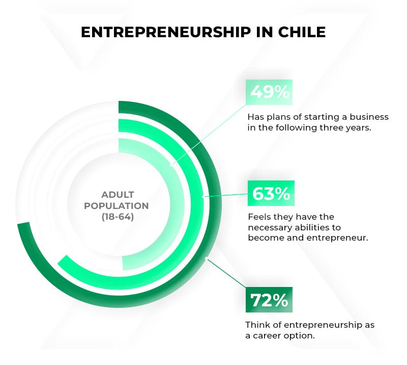 According to the Global Entrepreneurship Monitor (GEM), 62 percent of adult Chileans (between the ages of 18 and 64 years old) consider there to be plausible entrepreneurship opportunities within the next six months within their communities. This number is impressive, especially compared to Mexico’s 36.4 percent.