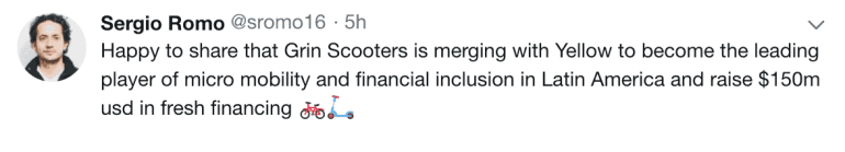 The Mexican scooter startup, Grin, and the Brazilian micro-mobility app, Yellow, have merged, and raised an additional US $150 million round to accelerate cross-country expansion.