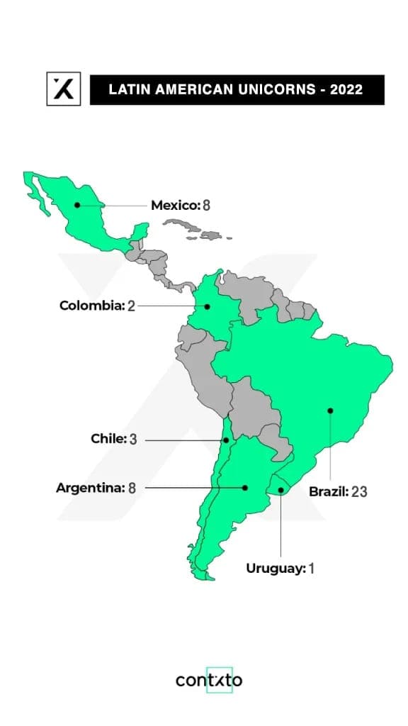 Mexico made its debut as a unicorn maker (we had to say goodbye to KIO Networks, SoftTek, and GBM from this list). It had zero unicorns in January, but by December seven companies had taken this title. One more Chilean unicorn was added to the list; and Brasil, leading with 18 unicorns (23 if we count all those that have already made an exit), made history with one of the decade’s most successful IPOs.