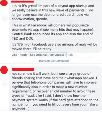- Related article: Facebook’s WhatsApp debuts payment service in Brazil