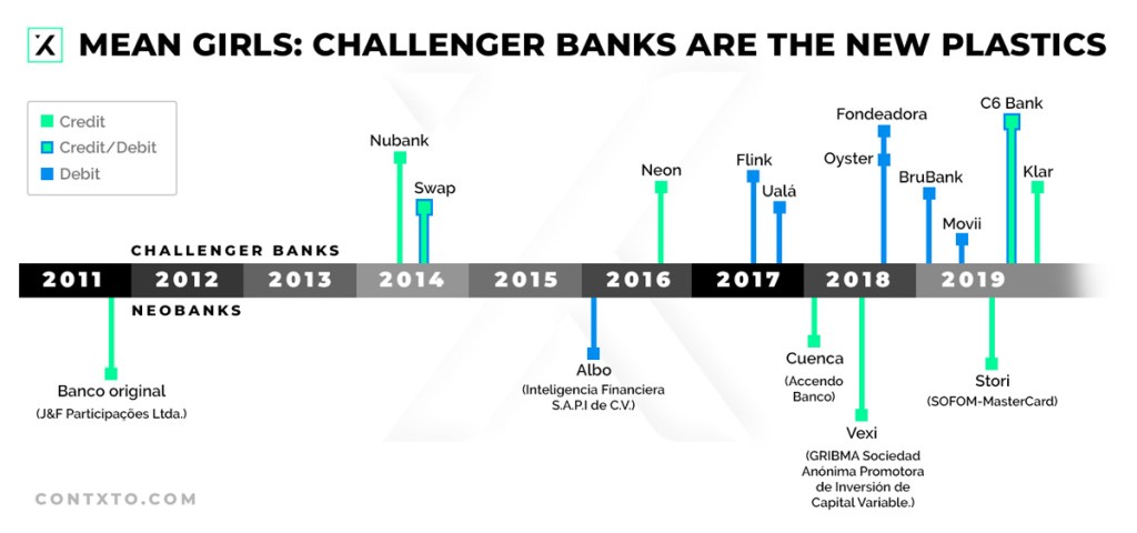 Making plastic a part of their portfolio may seem contradictory for challenger banks, but it actually makes perfect sense. By getting in bed with physical credit cards, challengers are capitalizing on Latin America’s largest source of bank revenue.
